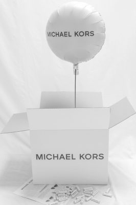 Ballonmailing met gepersonaliseerd model ballon, toevoeging van een flyer en een gepersonaliseerde doos